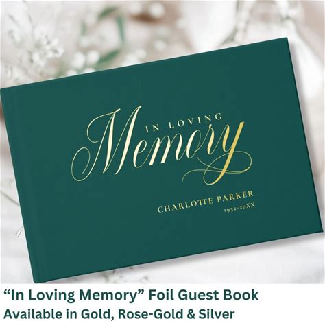 Memorial "In Loving Memory" Gold-Foil, Green Foil Guest Book