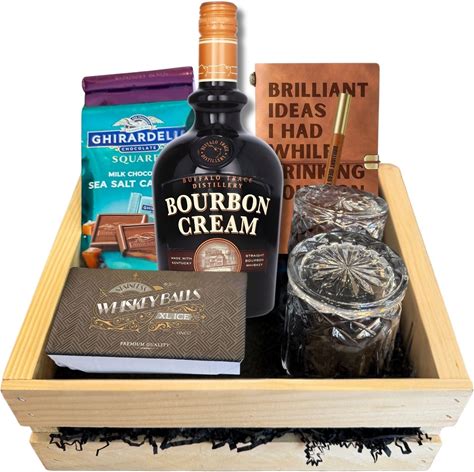 Buffalo Trace Bourbon Cream Gift Crate - Liqueur, Glasses, Chocolate & Whiskey Balls