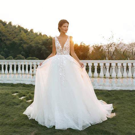 Stacees Bridal Wedding Dress Princess Flattering V Neck Sparkly High-End