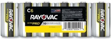 Rayovac ALC-6J Ultra Pro Alkaline Battery, 1.5V, C, Shrink Pack, 6/PK