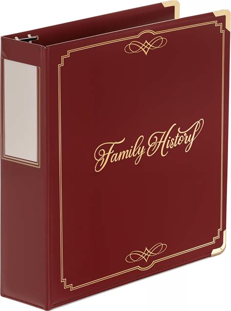 Performore Family History/Genealogy 3 Inch Ring Binder, Burgundy, Stitched Padded Cover With Gold Corners And Artwork, Includes Pen Loop