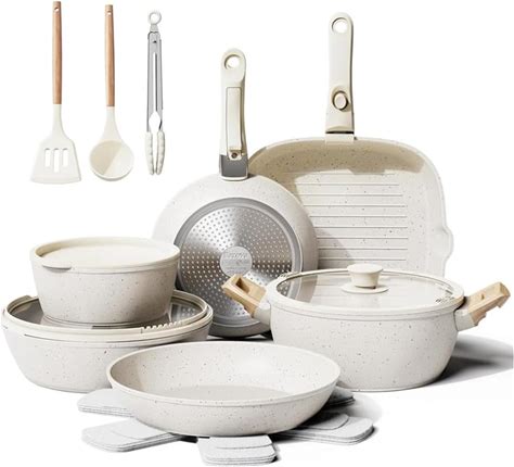 Carote Nonstick Cookware Sets, 24 Pcs Granite Non Stick Pots And Pans Set, Induction Cookware, White