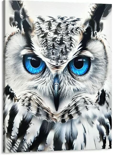 BCIIG Blue Eyed Owl Wall Art Poster Painting Black And White Decor Nordic Canvas Picture Modern Print Animal Bird Living Room Decor 16''X20''