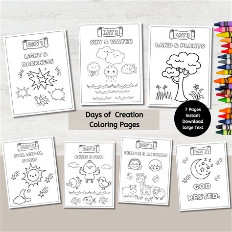 Printable Story Of Creation Craft Set, Genesis 7 Days Of Creation Craft, Story And Color Pages.