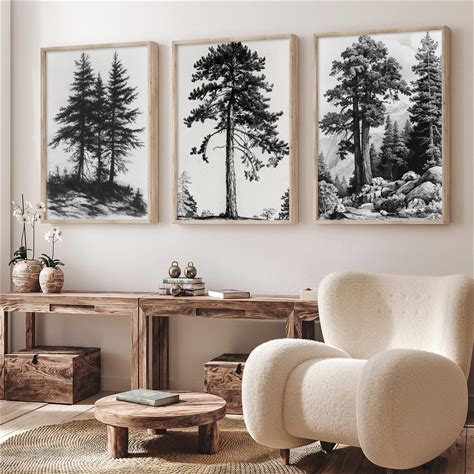 Black And White Tree Picture Pine Tree Sketch Wall Art Antique Landscape Painting Vintage Landscape Sketch Prints Black And White Forest Canvas Wall